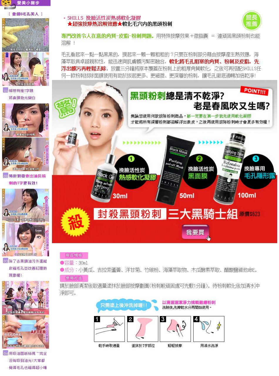SHILLS Black Gel Deep Sebum Softener, specializes on improving common skin problems such as sebum, acnes and blackheads. Combining massage plus Gel Liposomes to soften even the most stubborn blackheads.
