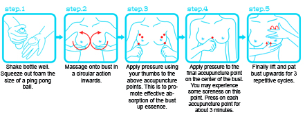 2. Clasp hands to even mousse on hands, then massage the bust from underarms by circling inwards.