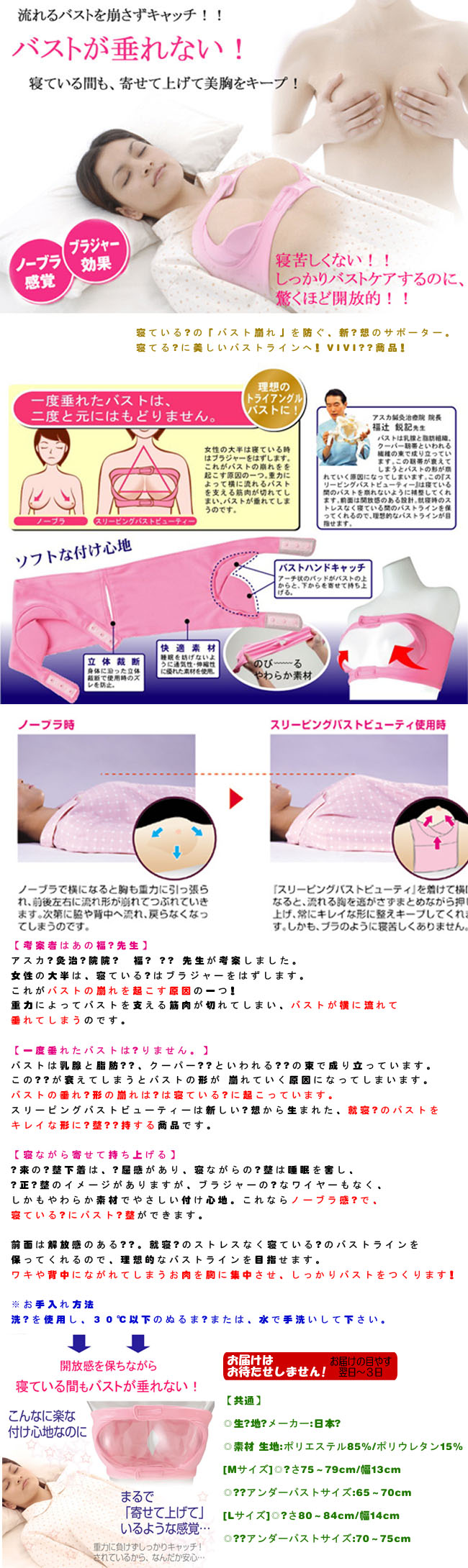 Description : 女性總會習慣在睡覺的時候,將內衣拿下,主要是因為內衣 的鋼圈設計,總會壓到肌膚,讓人感到不舒適 ... 在睡眠中,完美的胸型也漸漸的遠離。