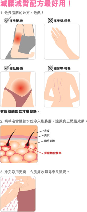 2B使用09年激新研發"深層燃脂精華",免除舊式產品只以辣椒、薑等箤取物促進發熱,未能真正達致溶脂效果,"深層燃脂精華"會隨水份滲入肌膚才產生熱力,使脂肪消耗,達到深層燃脂效果,並可減少因辣椒素所產生的敏感和容易灼傷皮膚等問題。