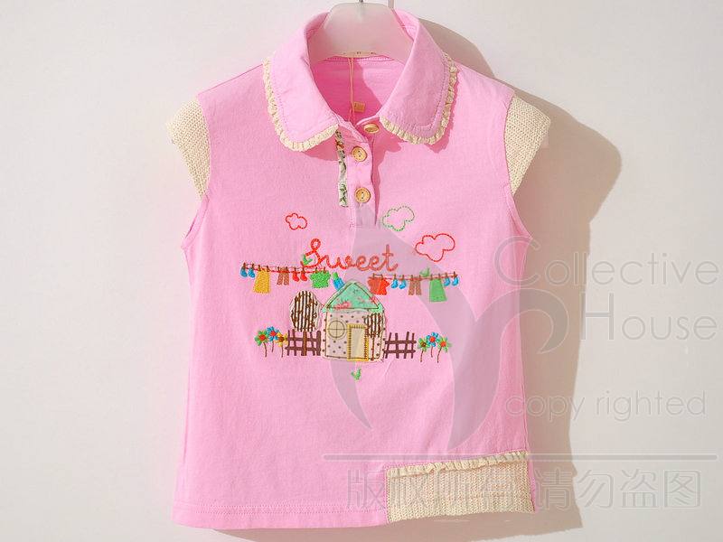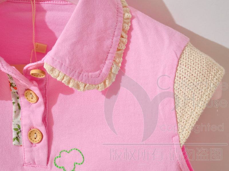 童星果粉色圆领上衣