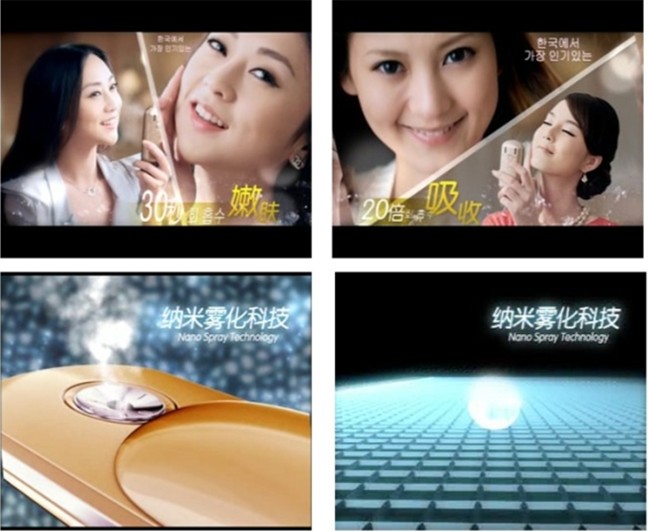 每秒振动16万次以上的超高速振动技术,使超微粒子抚触每一吋肌肤,渗透至角质层,让肌肤持续深度保湿、润泽。由于水分子已转化为超微粒子,即使是上妆后使用,也不用担心妆容崩落。