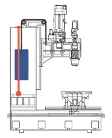 COUNTER WEIGHT BALANCE SYSTEM Exclusively designed counter weight balance system. The counter-balance weight moves on a guide shaft to assure movement straightness accuracy. There is no vibration in the forward/backwards and in the right/left directions. This creates superior workpiece surface accuracy to meet various mold machining requirements. Patented in Taiwan and China.