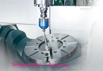 | | | | | It is all about Temperature control | | |  | | The machine's actual cutting quality and accuracy relies on the temperature control techniques. No machine can be called precision machinery without mastering this critical know-how. Pinnacle 5-axes machines employ chiller to keep the headstock in a constant and stable temperature level, and depended on customer's work shop condition, coolant through ball screws are available to minimize the temperature variation. |