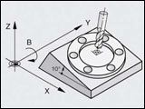 With Cycle 19 with swivel heads or tilting tables. You program the operation as usual in the working plane, for example in X/Y. The machine runs the program in a plane that has been tilted by one or more rotary axes with respect to the main plane.